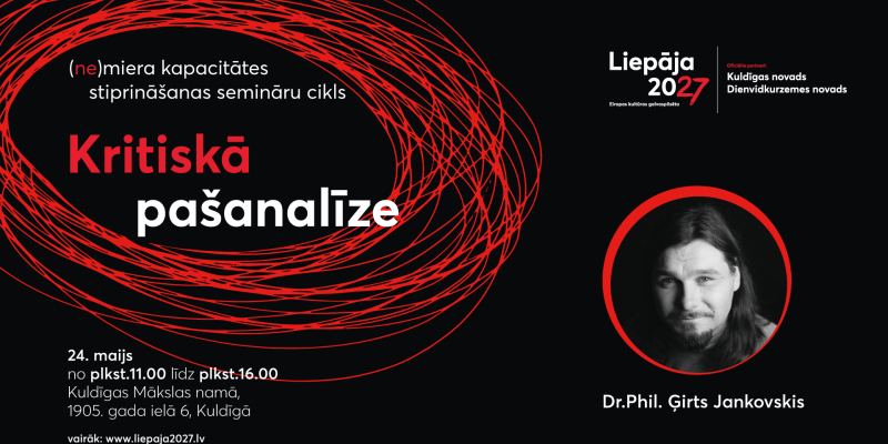 Seminārs “Kritiskā pašanalīze” notiks piektdien, 24. maijā, plkst. 11.00, Kuldīgas Mākslas namā, 1905. gada ielā 6, Kuldīgā.