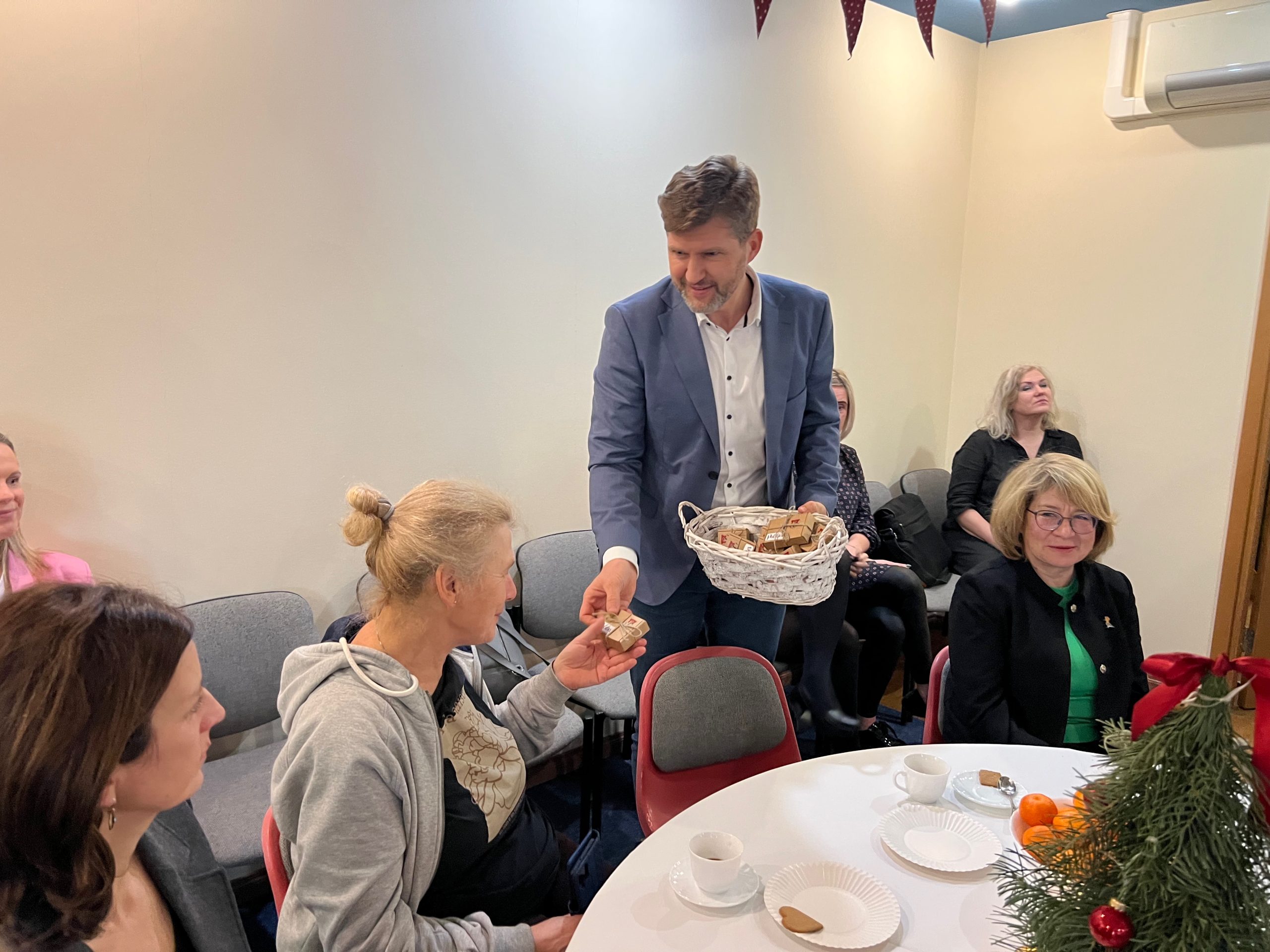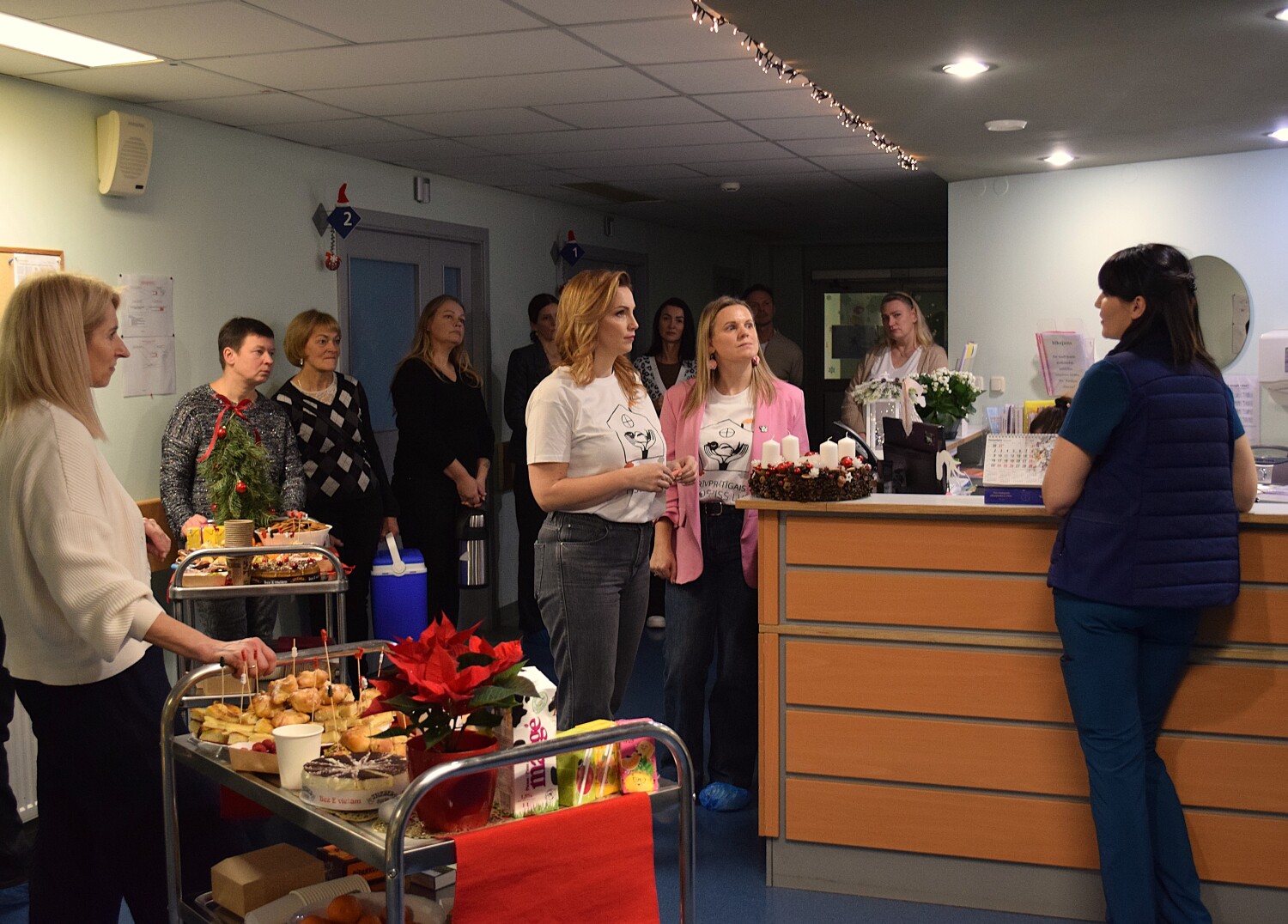 Pēc brīvprātīgo kopbildes un līgumu parakstīšanas, tika sagatavots “Svētku galds”- dažādi gardumi ratiņos, kā piemēram, “Ineses kūkas”, “Druvas saldējums” un citi našķi vai neikdienišķas uzkodas, ko pacienti nesaņem ikdienā. Tie jaunie brīvprātīgie, kuri jau bija izgājuši apmācības, devās līdzi pieredzējušākiem Hospiss pārstāvjiem, lai iepazītos ar pacientiem nodaļā un praktiski pieredzētu “Svētku galda” norisi.