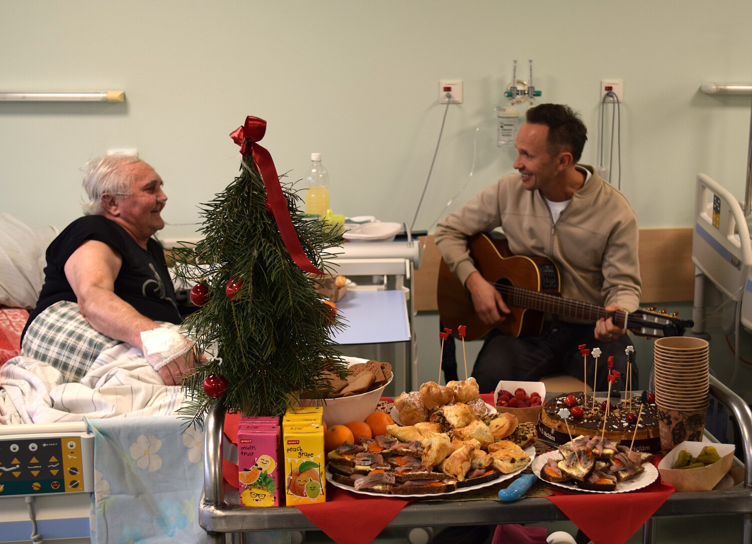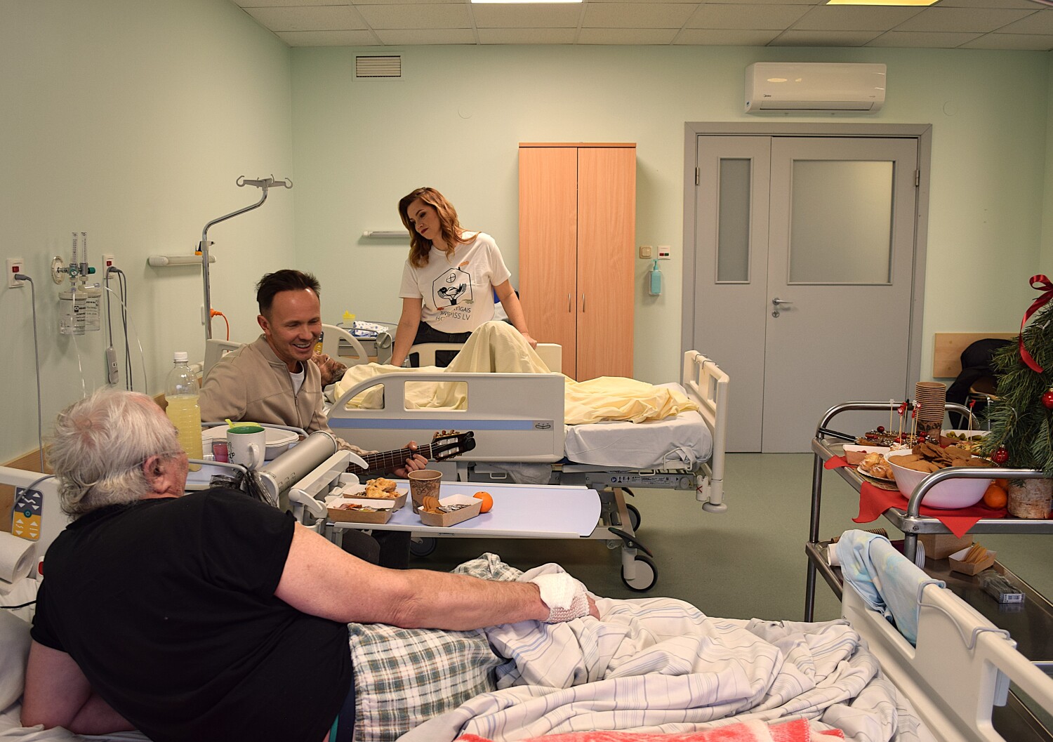 Jauku svētku atmosfēru uzbūra mūziķis Renārs Kaupers, sniedzot muzikālu priekšnesumu atklāšanas pasākumā daļā, gan dodoties kopā ar brīvprātīgajiem uz nodaļu pie pacientiem.
