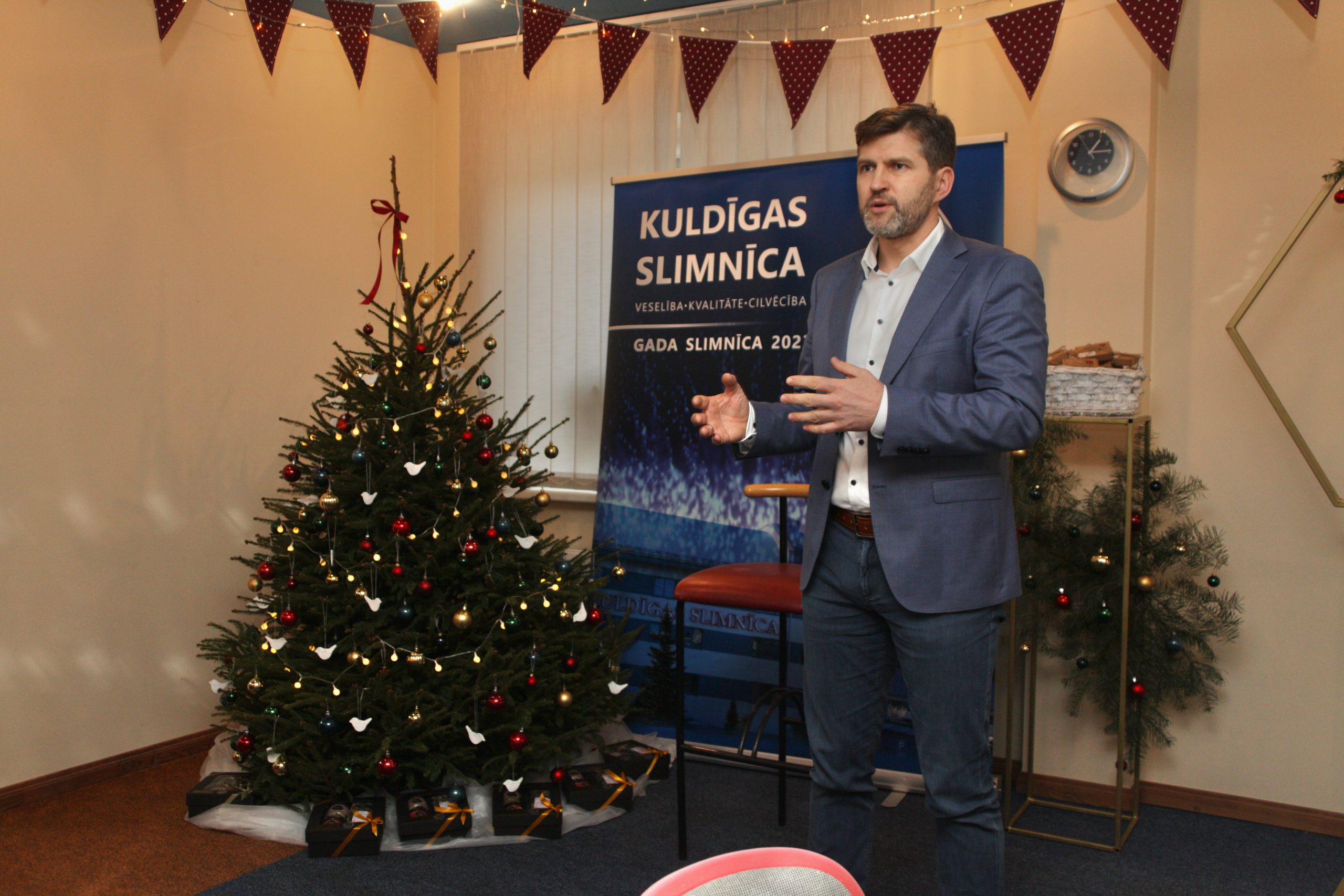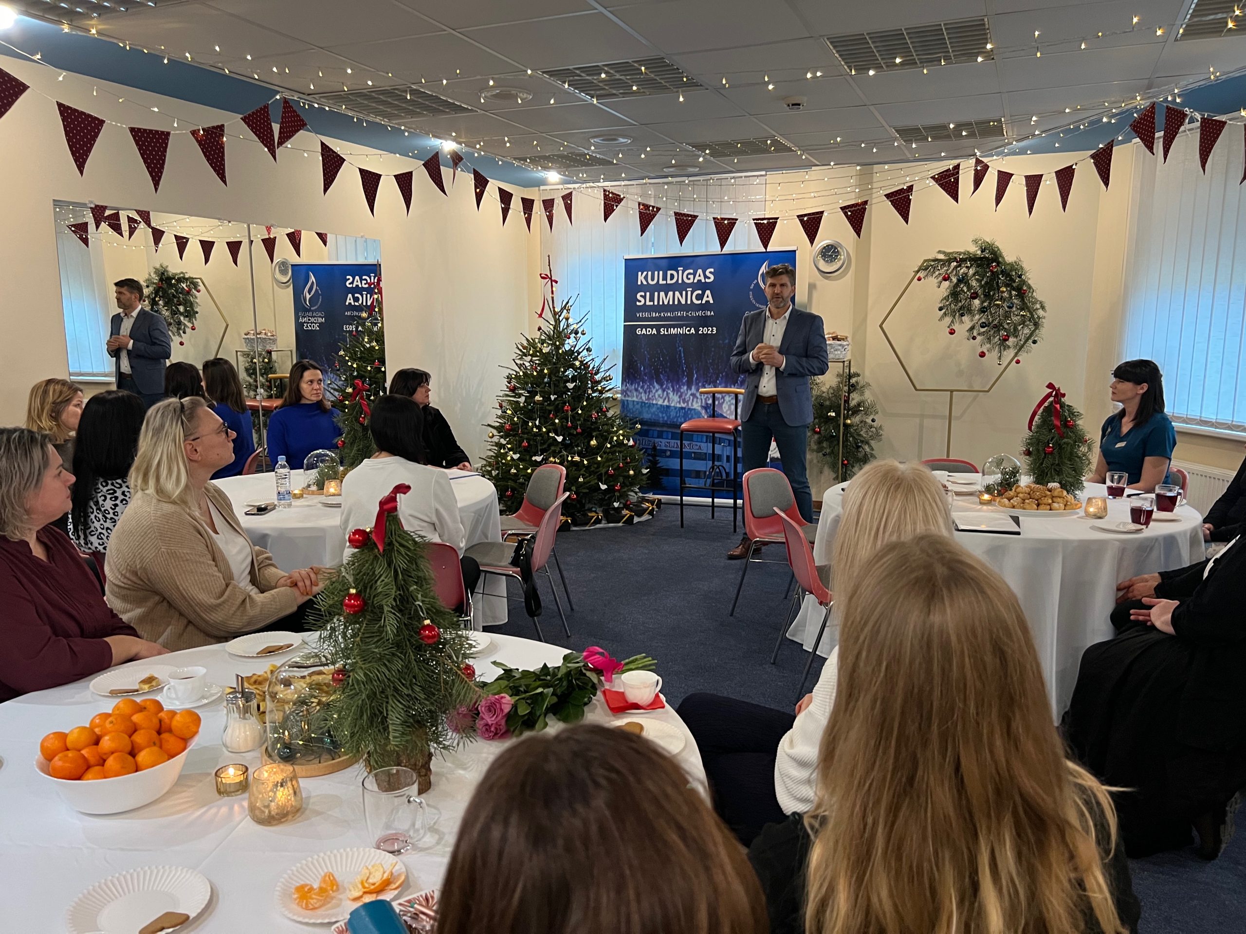 2024.gada 12.decembrī Kuldīgas slimnīcas telpās norisinājās sirsnīgs un iedvesmojošs “Hospiss” Kuldīgā atklāšanas pasākums, piedaloties slimnīcas personālam, brīvprātīgiem un “Hospiss” organizācijas pārstāvjiem no Rīgas un Ventspils. Tagad arī Kuldīgas slimnīcas Terapijas nodaļā vismaz reizi nedēļā notiks labdarības akcija “Svētku galds”, lai iepriecinātu smagi slimos pacientus ar gardumiem, aprunātos un sniegtu emocionālo atbalstu.