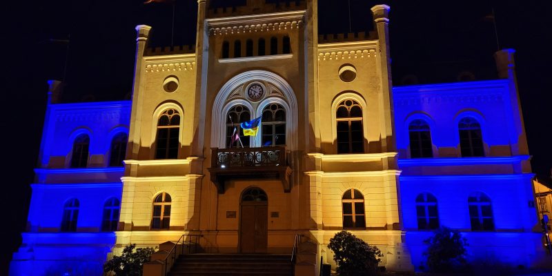 Paužot nerimstošu atbalstu Ukrainas brīvībai un un godinot ukraiņu tautas varonīgo cīņu pret agresorvalsti Krieviju, 23 un 24. augustā Kuldīgas novada domi izgaismos Ukrainas karoga krāsās