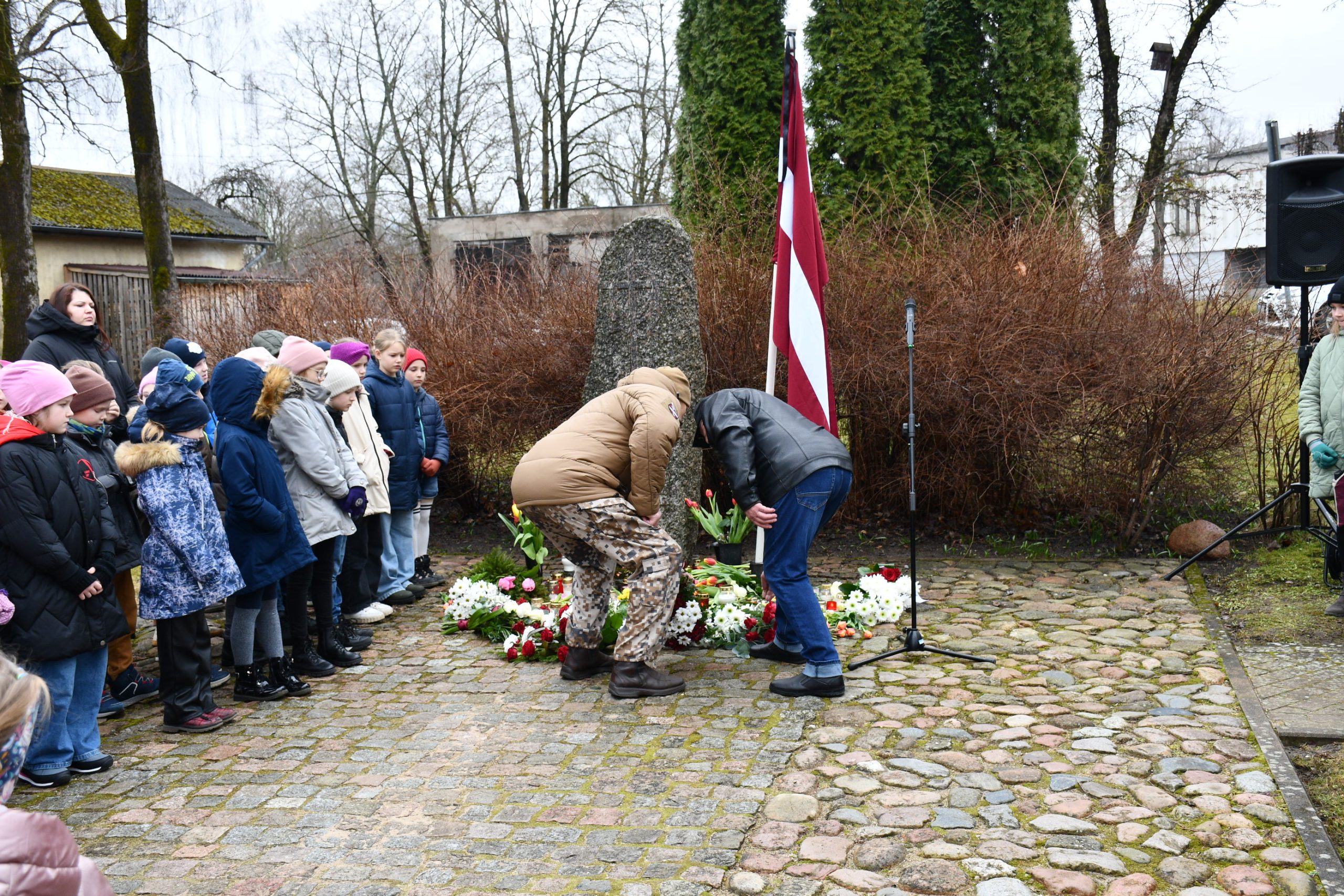 - Lēnās komunistiskā genocīda upuru piemiņas brīdis, ziedu un svecīšu nolikšana pie represēto piemiņas akmens norisināsies 12.45.