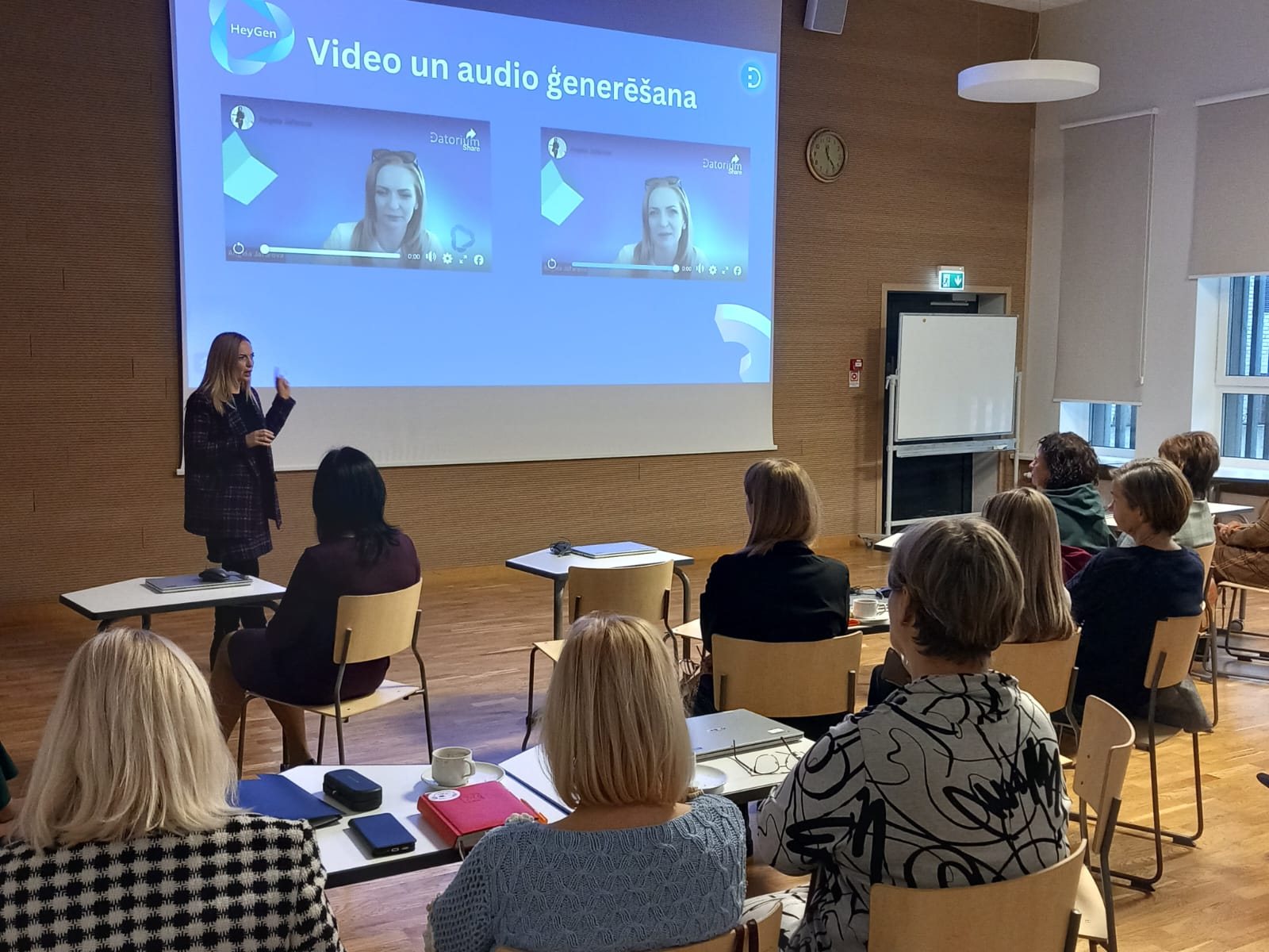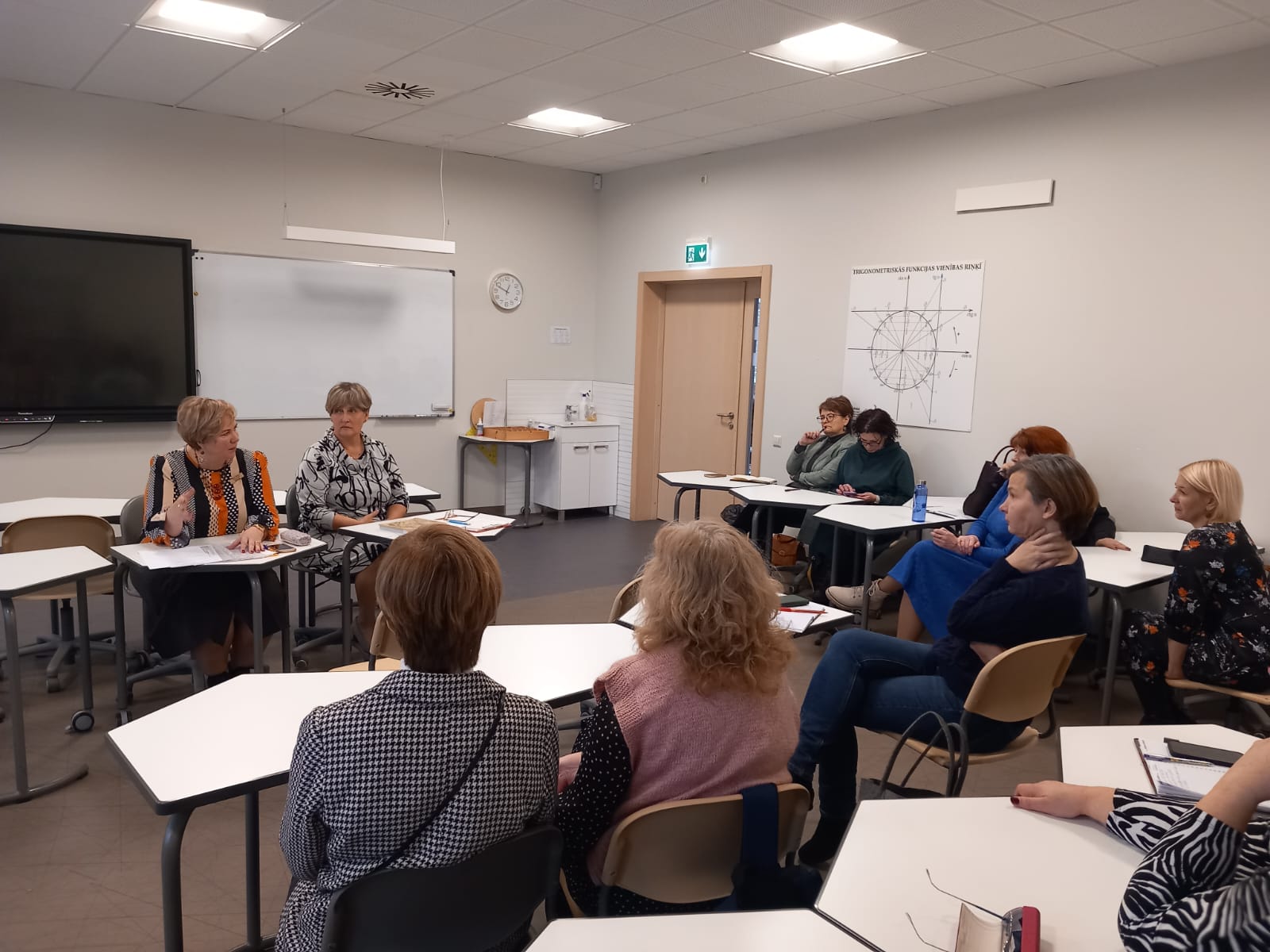 Vietnieki un mācību jomu koordinatori iepazinās ar Dobeles Valsts ģimnāzijas izglītības procesa organizāciju, tradīcijām. Guva informāciju par skolas sadarbību ar vecākiem, par absolventu iesaisti skolas ikdienas bagātināšanā ar dažādiem notikumiem un pasākumiem, piemēram izstāžu organizēšanu. Arī šajā tikšanās reizē piedalījās viena no skolas absolventēm Andžela Džafarova no DATORIUM, kura iepazīstināja ar mākslīgā intelekta izmantošanas priekšrocībām, gatavojot mācību stundu saturu un uzdevums.