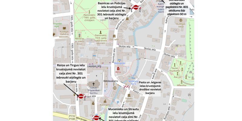 Tiks slēgti sekojošus ielu posmi: